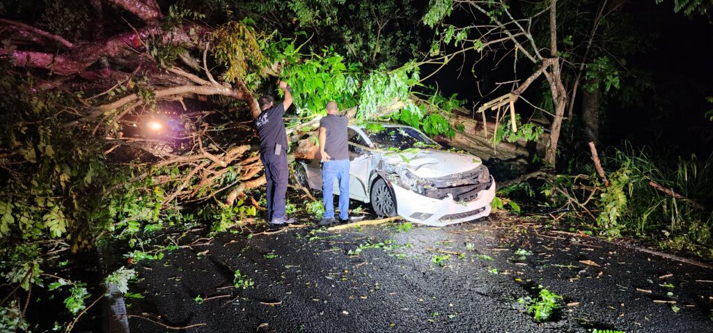 Una mujer que transitaba por la carretera 827 del Bo. Ortiz en Toa Alta esta viva de milagro ya que al llegar al Kilometro 9 luego de hacienda bravo en Toa Alta le cayó un arbol ensima de su vehículo.